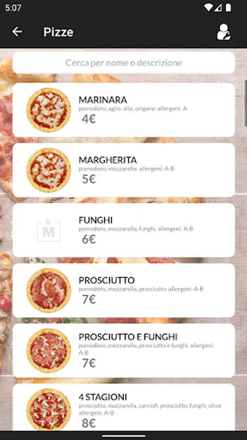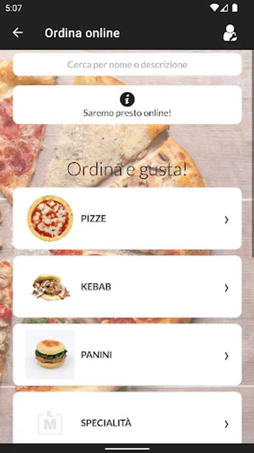 Wide choice of pizzas, salads, fried foods, desserts and drinks.