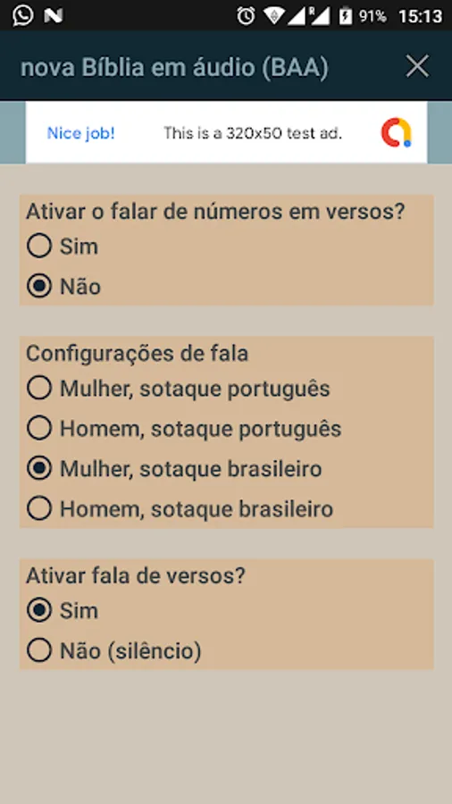 - Configuration of four types of accents (woman, man [Portugal], woman, man [brazilian]) (Google TTS engine)