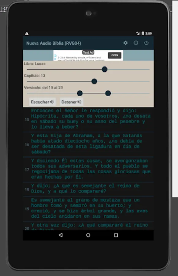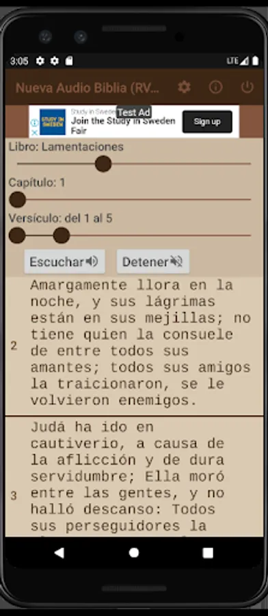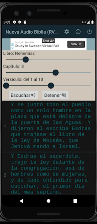 Through a simple and intuitive user interface, listen to and read the different books of the holy scriptures. This app uses Google's technology known as text to speech (TTS) which, in this case, reads the sacred scriptures in real time. This leads to less memory space consumption on the mobile device. This App does not require an Internet connection, so you can enjoy the scriptures without having an active connection.
