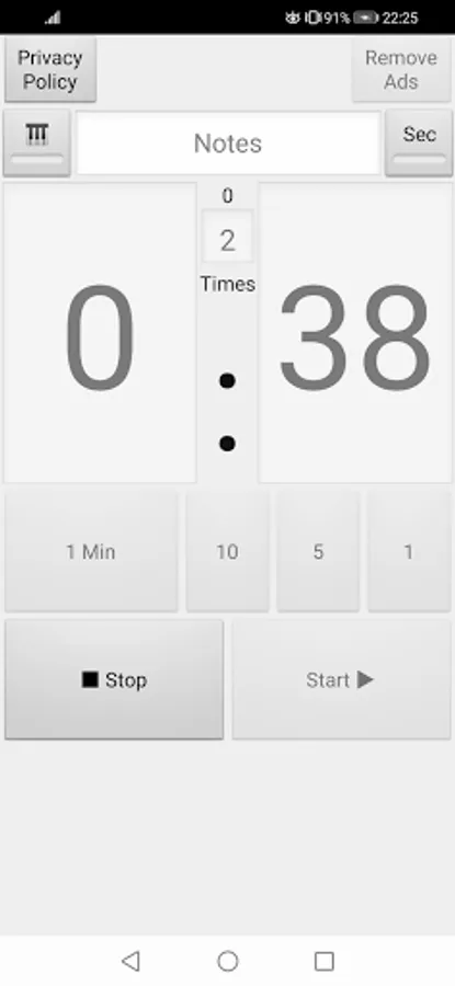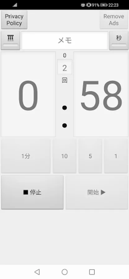 A simple interval timer free app with a one-line notes that repeats alarms and vibrations a specified number of times at fixed time intervals specified in minutes and seconds. You can switch between two types of sounds and select the presence or absence of a seconds count sound. Does not sleep during operation, does not operate on sleep screen / lock screen / background. For practicing minute-by-minute time management such as Kraepelin tests and presentations. For muscle training / exercise and management of elapsed time of talk time.