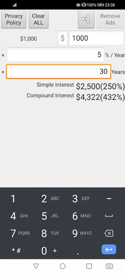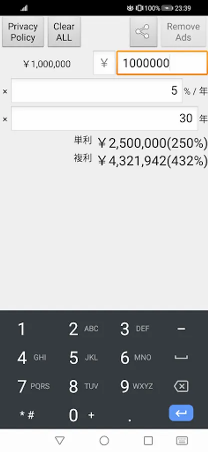 A simple compound interest calculator free app that calculates the total principal interest of simple interest and compound interest by inputting the principal, annual interest and period (year). Supports negative interest rates.