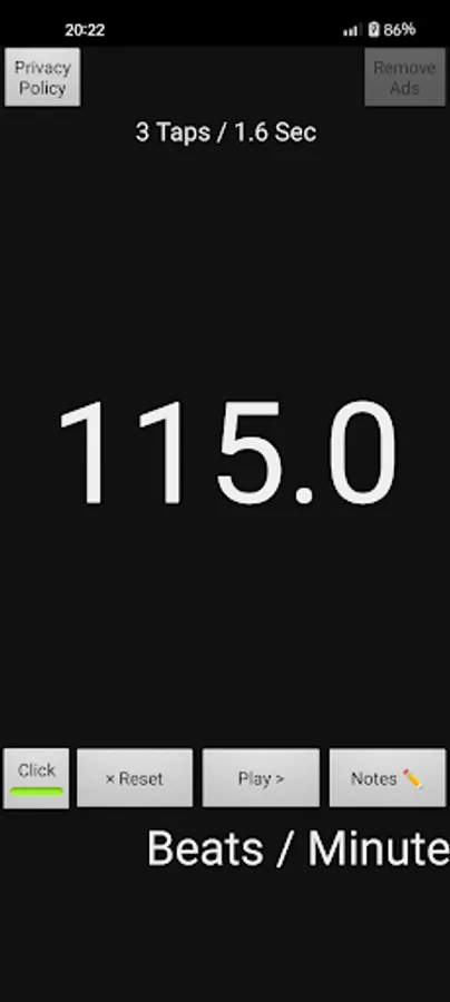 A simple BPM counting free app that counts BPM and digitally displays it by simply tapping the screen with your finger without using a microphone. Measure the heart rate of the pulse and the tempo of music to the first decimal place without using a heart rate monitor. Make a note of the measured BPM. Count the BPM with the metronome. BPM (Beats Per Minute)