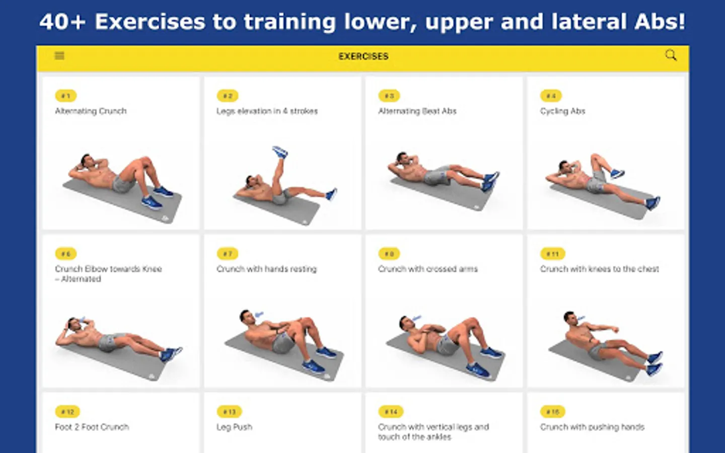 Every exercise includes a description, instructions and a 3D preview of the movement in order to be able to perform the workout in the best way.