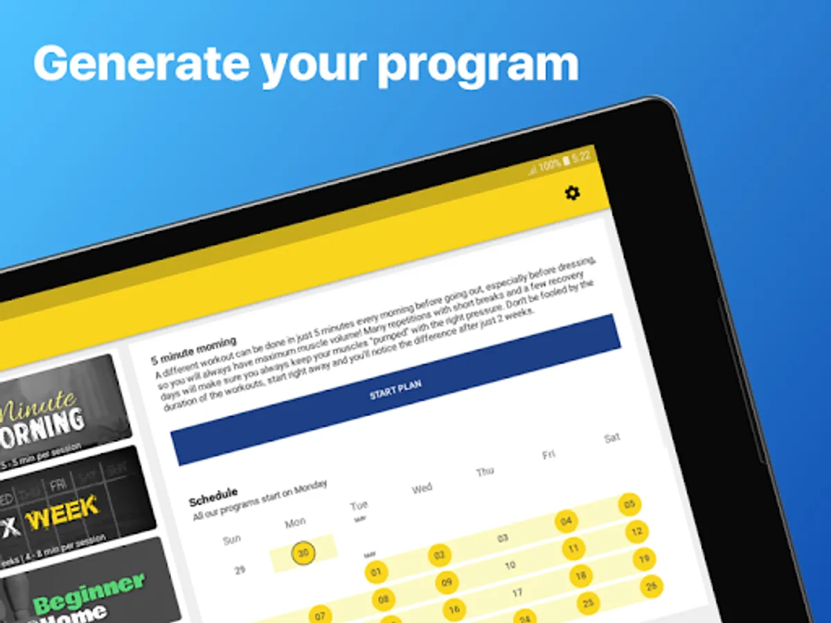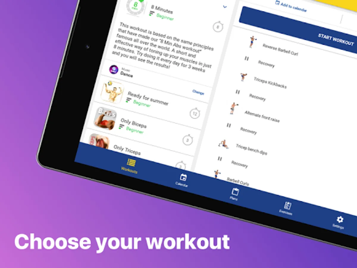 Every exercise includes a description, instructions and a 3D preview of the movement in order to be able to perform the workout in the best way.