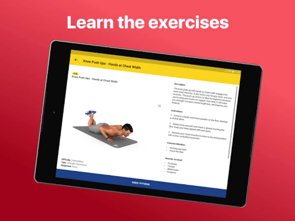 Every exercise includes a description, instructions and a 3D preview of the movement in order to be able to perform the workout in the best way.