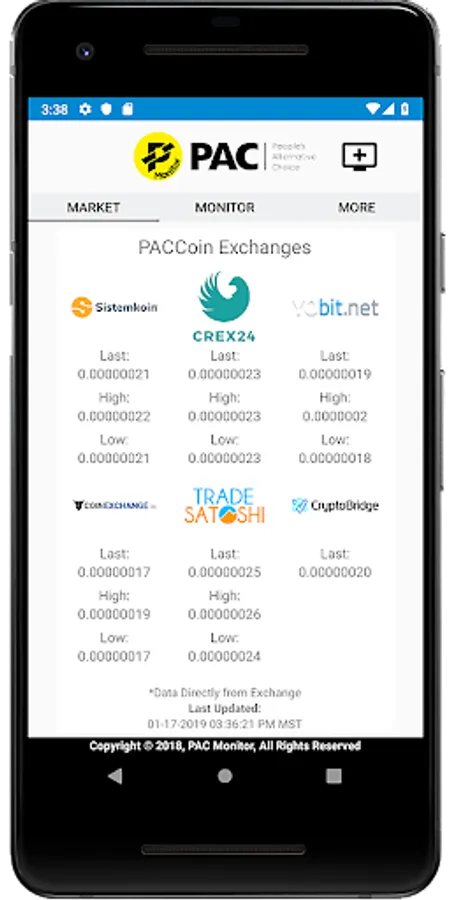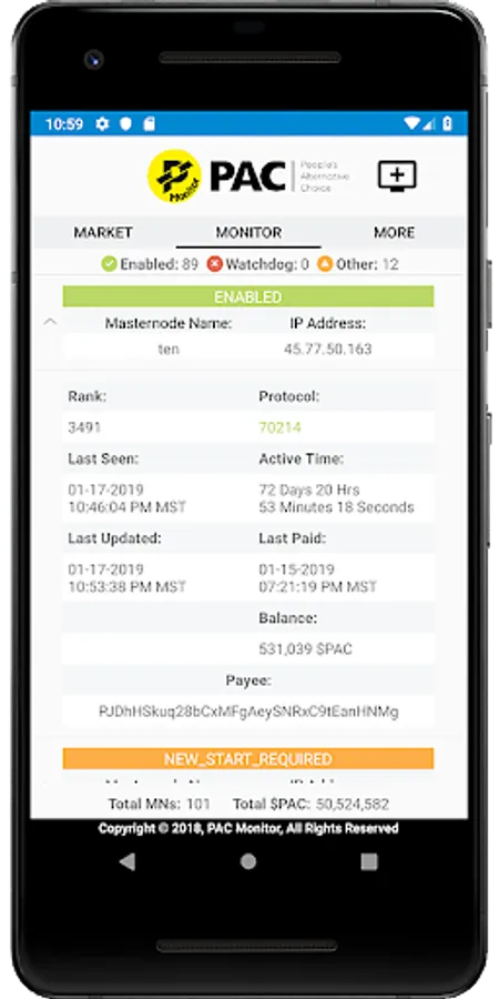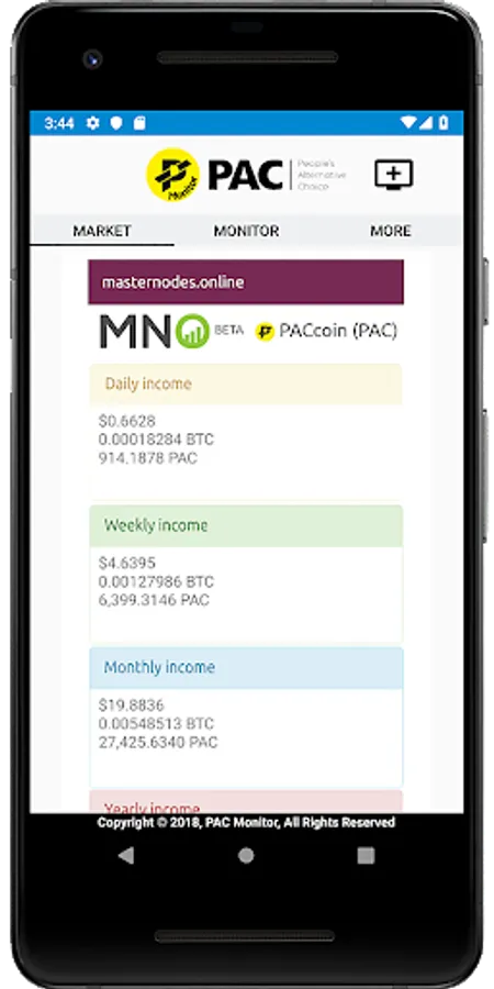 Current Features: Multi-Masternode Management, Status Change Notifications, Payment Notifications, Direct Exchange API queries for 24hour "Last", "High", & "Low" trades, CoinMarketCap.com Stats, Masternodes.online Income data, and quick access links to $PAC Social Media outlets.