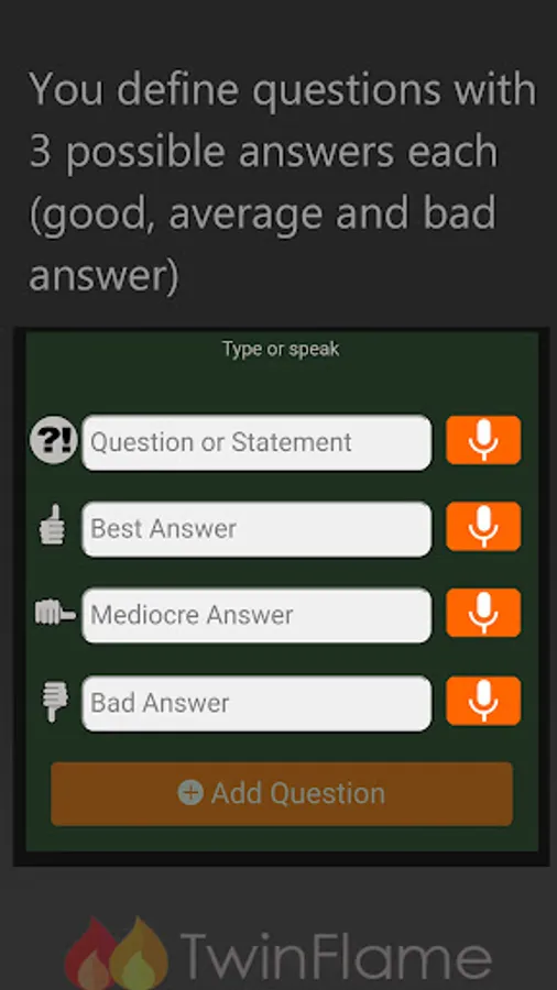 You define questions or statements, each with 3 possible answers (good, medium, bad).