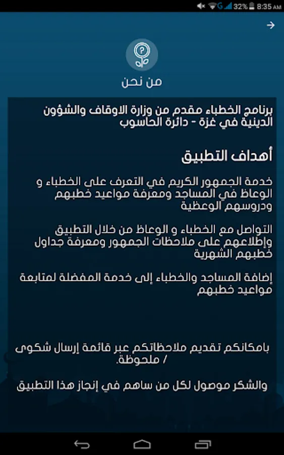 2- Communicating with the preachers and preachers through the application and informing them of the audience’s observations and knowing their monthly sermon schedules