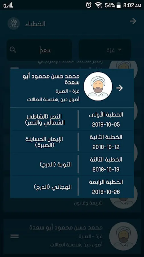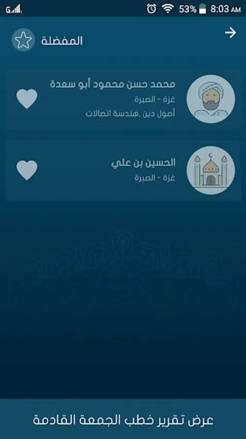 3- Add mosques and preachers to the favorite service to follow the timing of their sermons