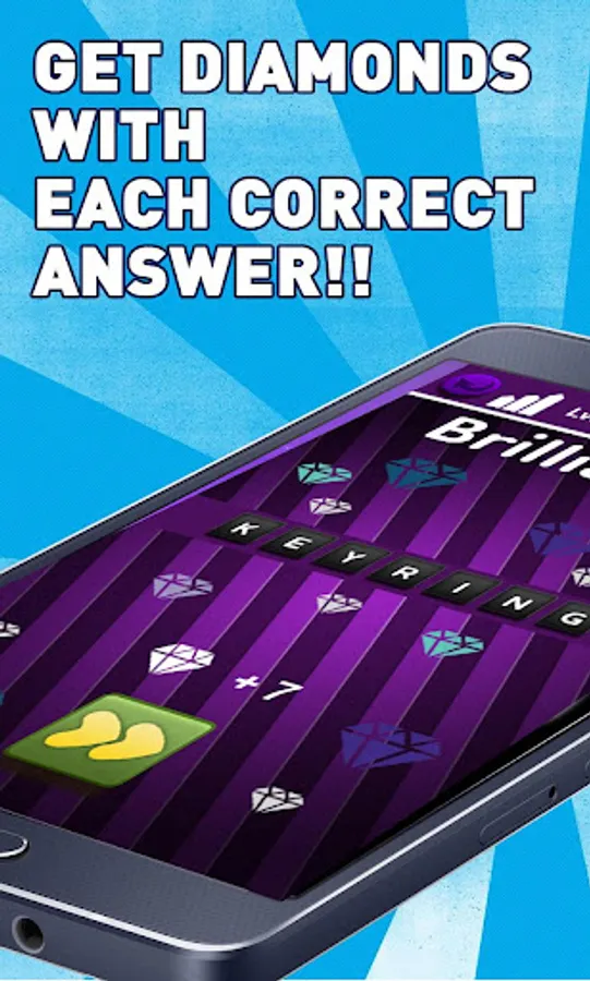 With every correct answer you gain diamonds; you can spend them to get the answer or clues in the form of a letter that's contained in the answer.