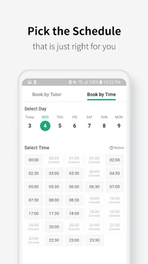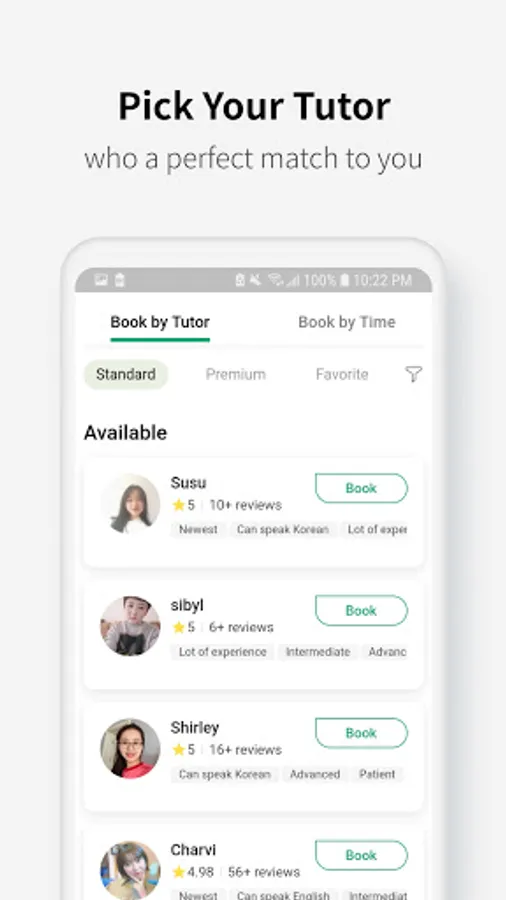 Book your lessons in real-time, pick your time, tutor, and materials.