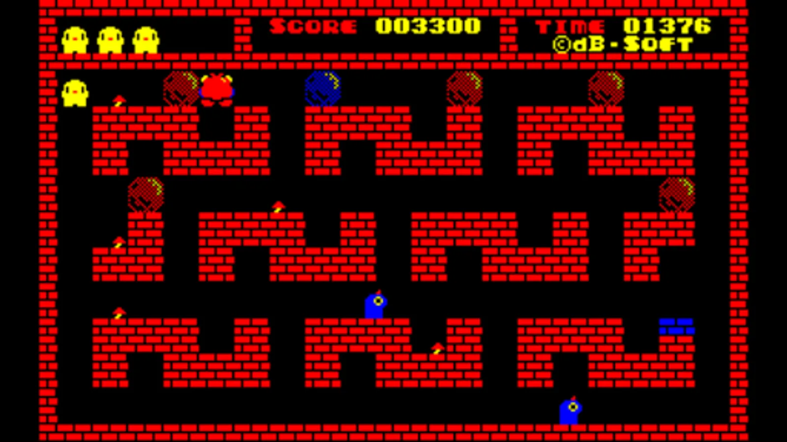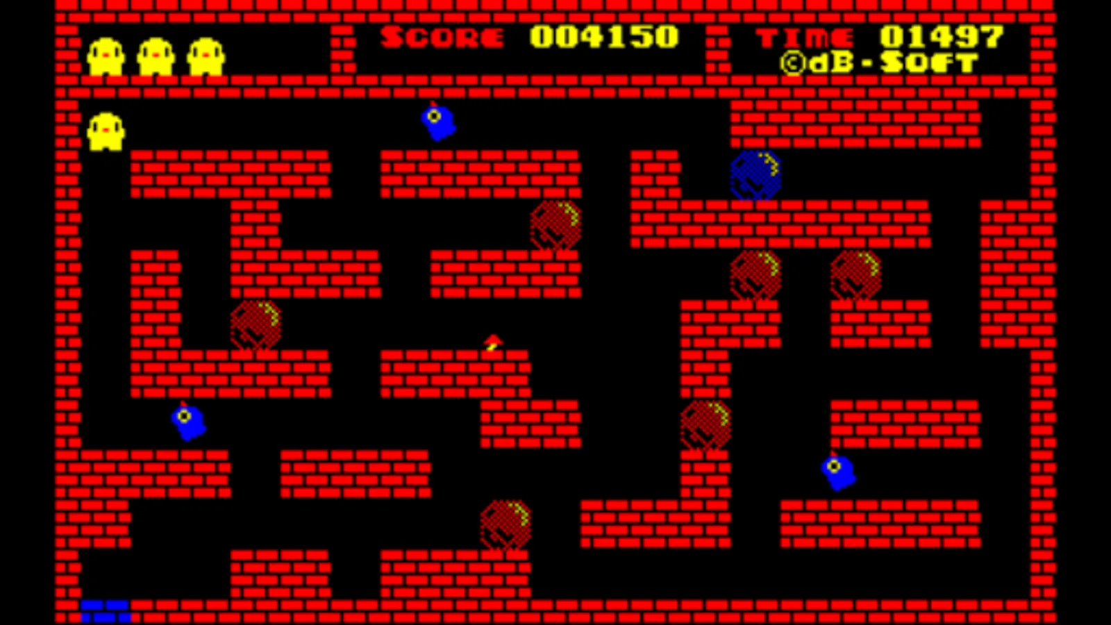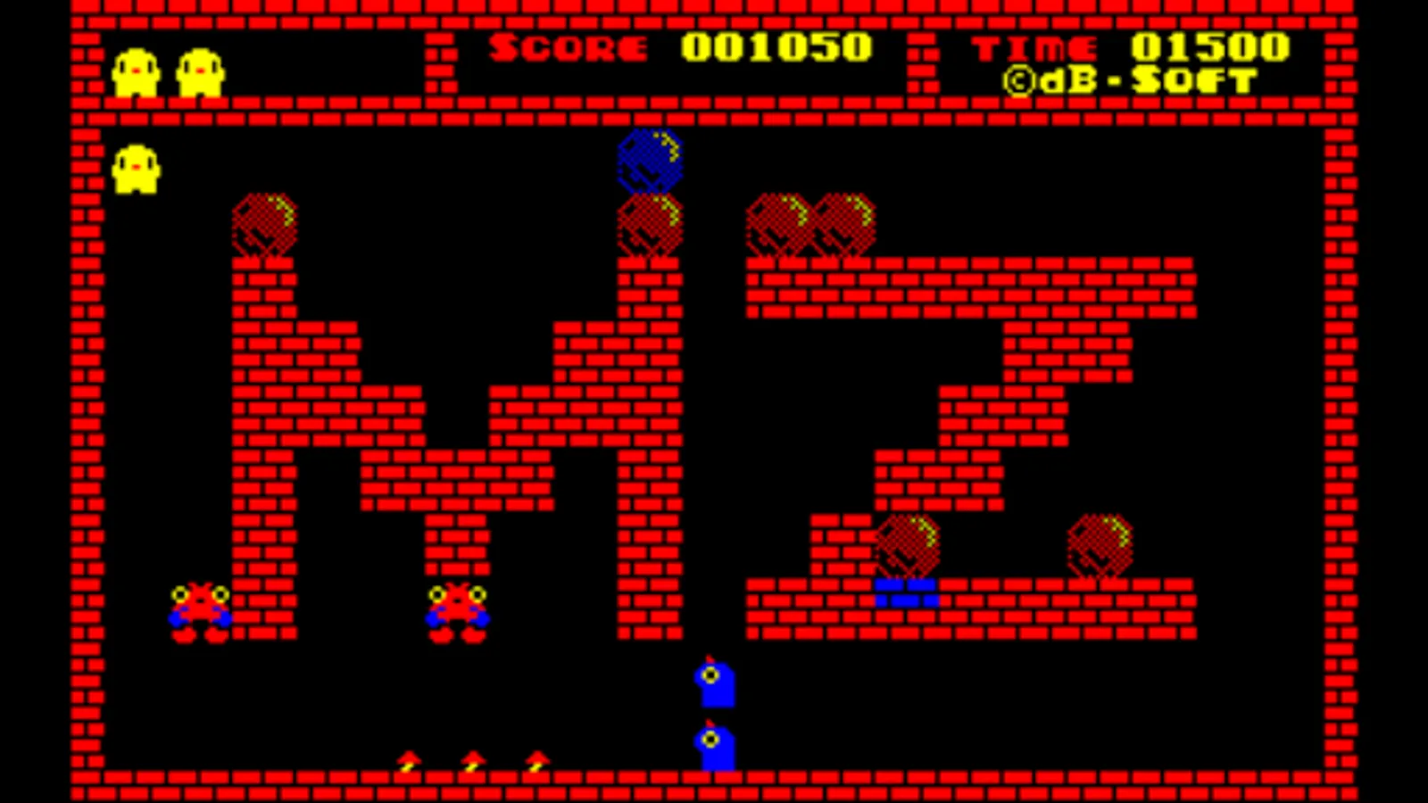 Tlappy has to push blue stone to get it on blue wall. Evil frogs and ghosts are preventing Tlappy from doing so. Fortunately, Tlappy can grab and throw magical toadstools to put enemies to sleep.