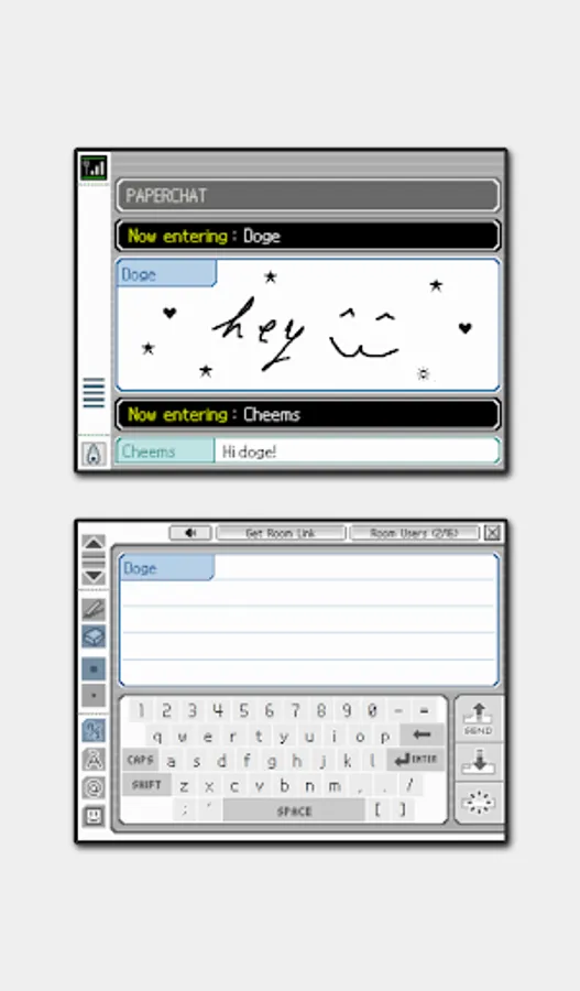 Paperchat is a spiritual successor to the drawing and chat applications included with the many handheld videogame consoles released in the 2000s, bringing a nostalgic feeling through its user interface.