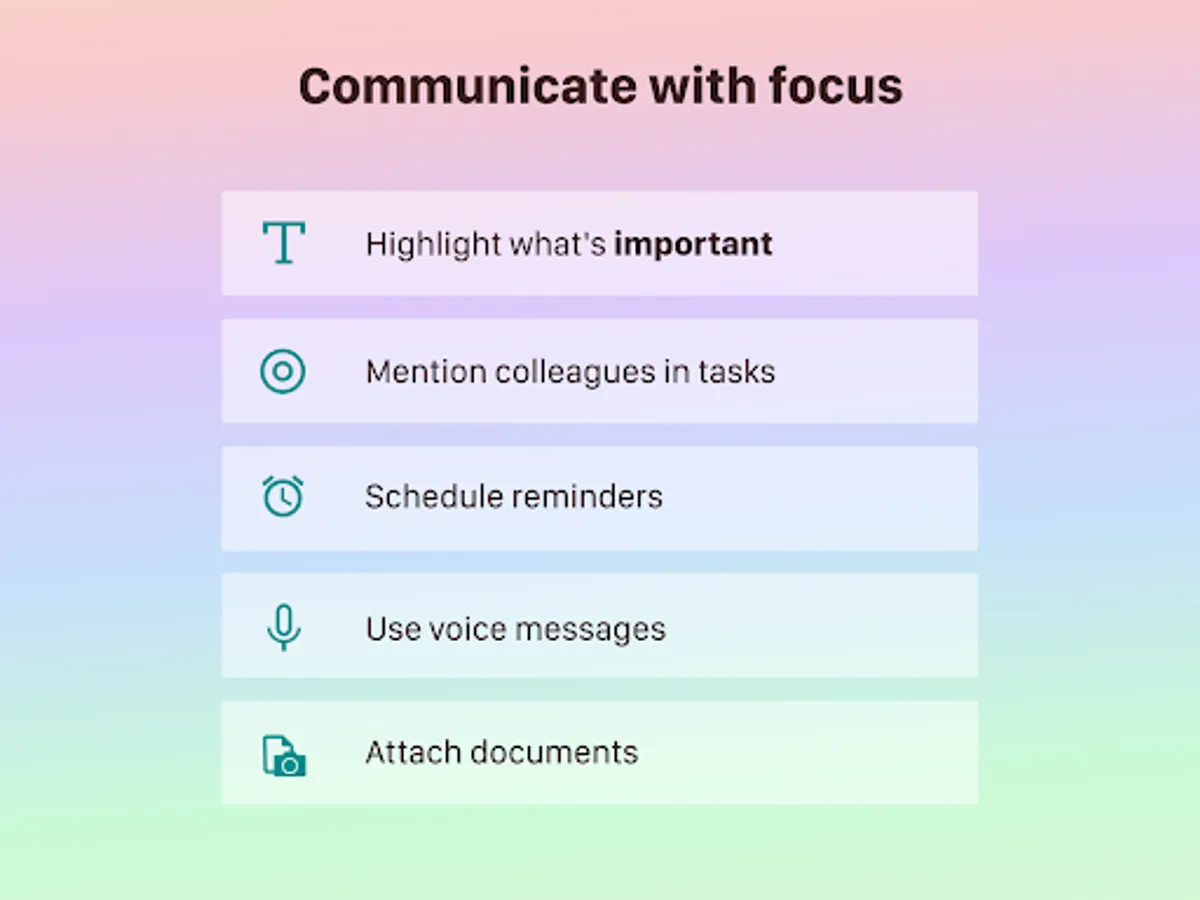 Pyrus helps you coordinate your team. You can assign tasks, monitor their progress, and control workflow.