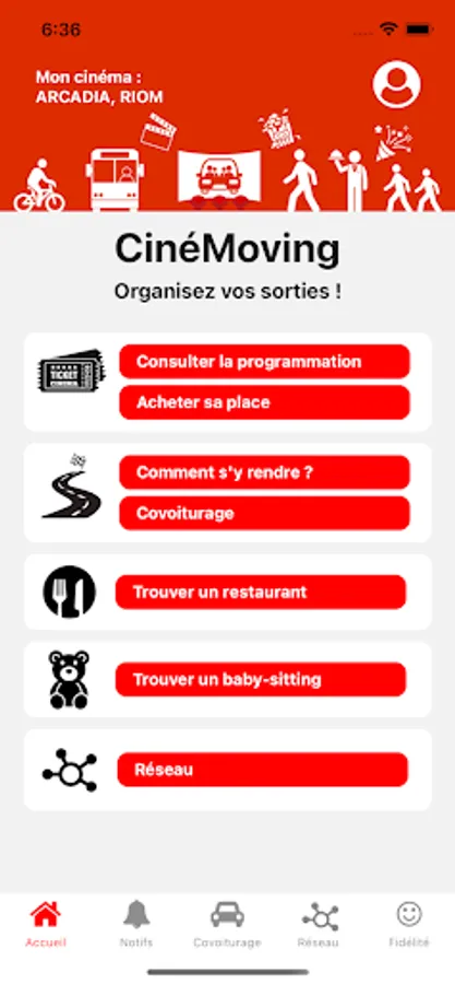 CinéMoving is a free application designed to facilitate your cinema outings. This first version is intended for the Arcadia cinemas in Riom, and Le Modern in Issoire.