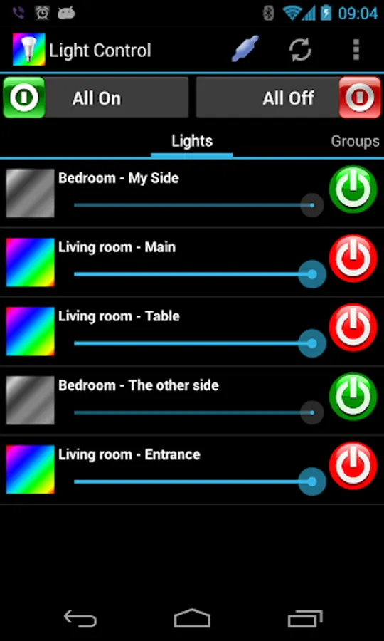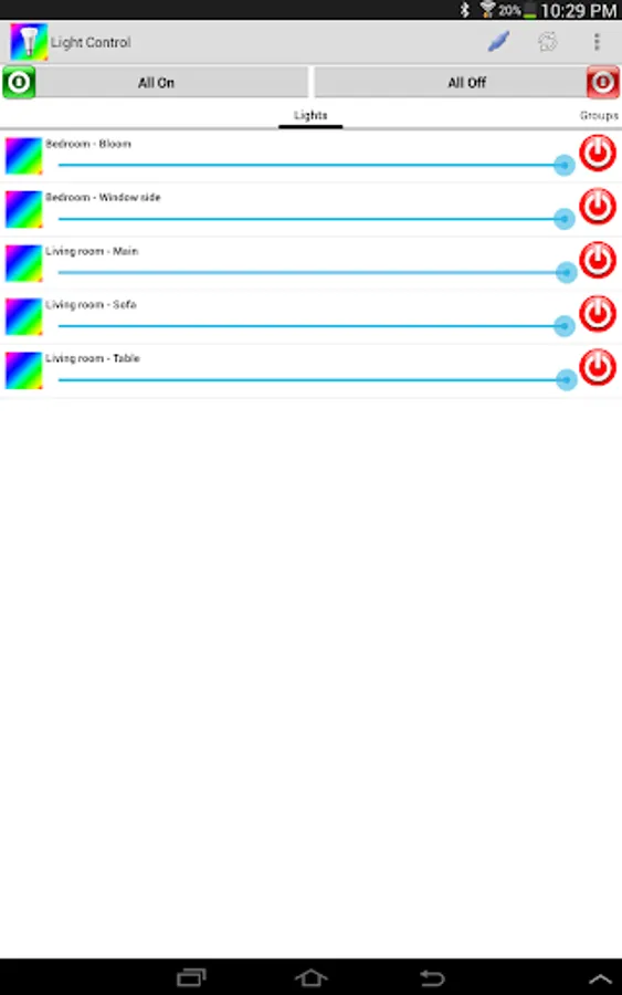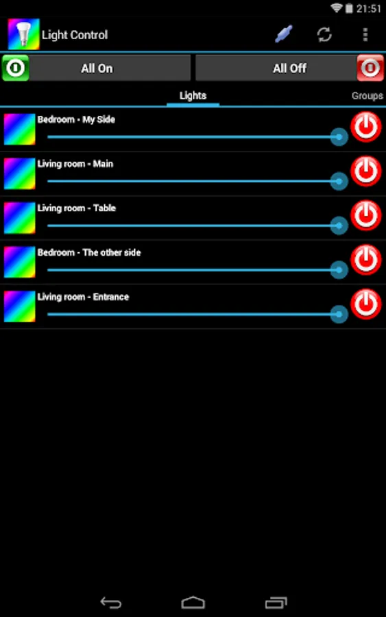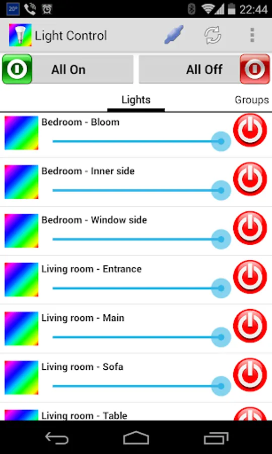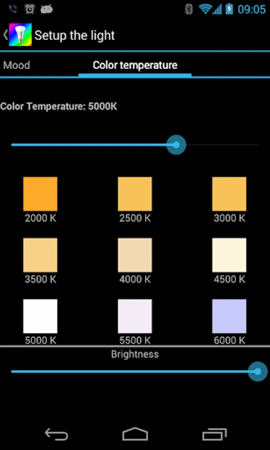 LightControl is designed around the separation of bulbs/groups and colors/moods/color temperature so that any bulb/group can be used with any color/mood/color temperature.