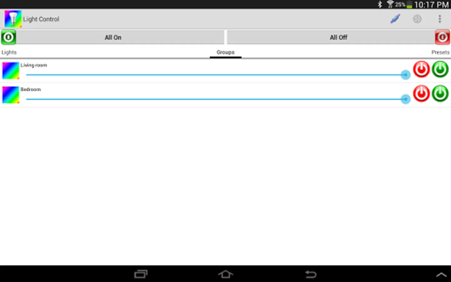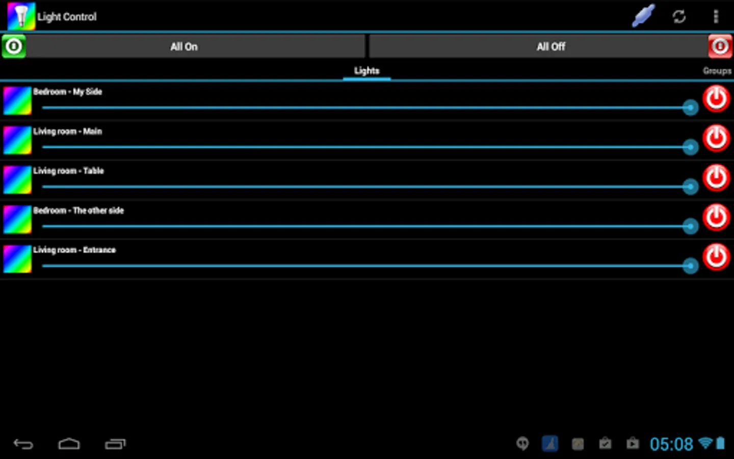 LightControl is an application for controlling your Philips Hue lighting system. It provides quick manual controls over the single light or a group as well as presets.