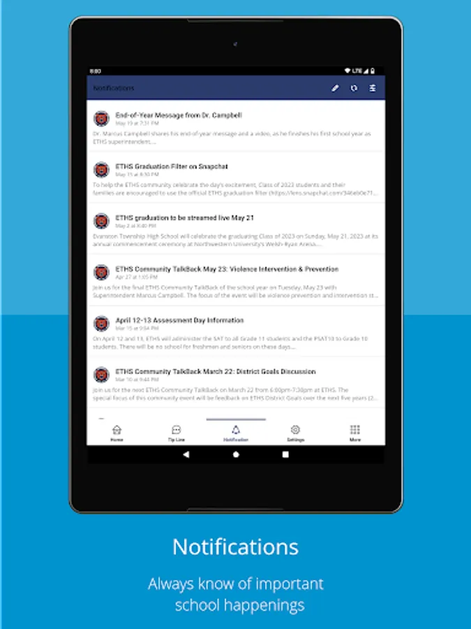 The official Evanston Township HSD 202 app enables students, parents, alumni, staff and supporters of ETHS to quickly access information to stay connected to the school.