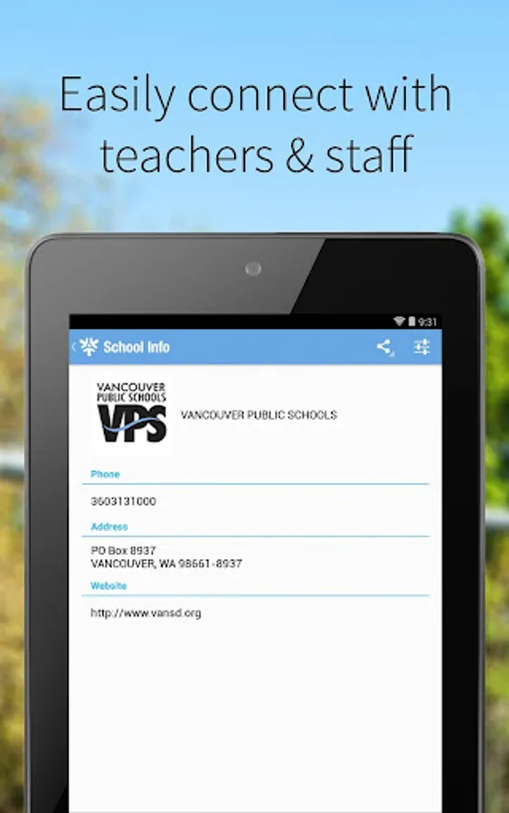 The Vancouver Public Schools app gives you a personalized window into what is happening at the district and schools. Get the news and information that you care about and get involved.