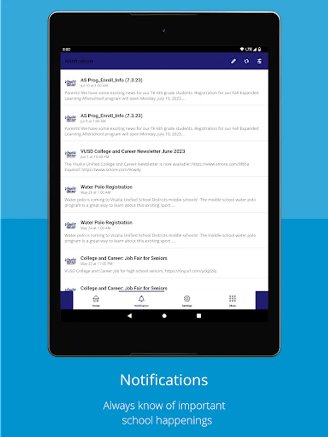The official Visalia USD app gives you a personalized window into what is happening at the district and schools. Get the news and information that you care about and get involved.
