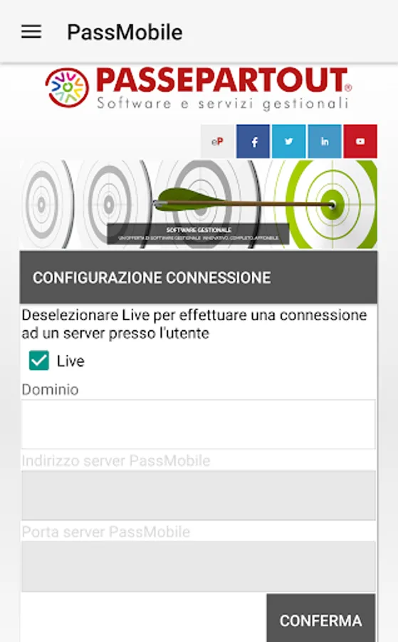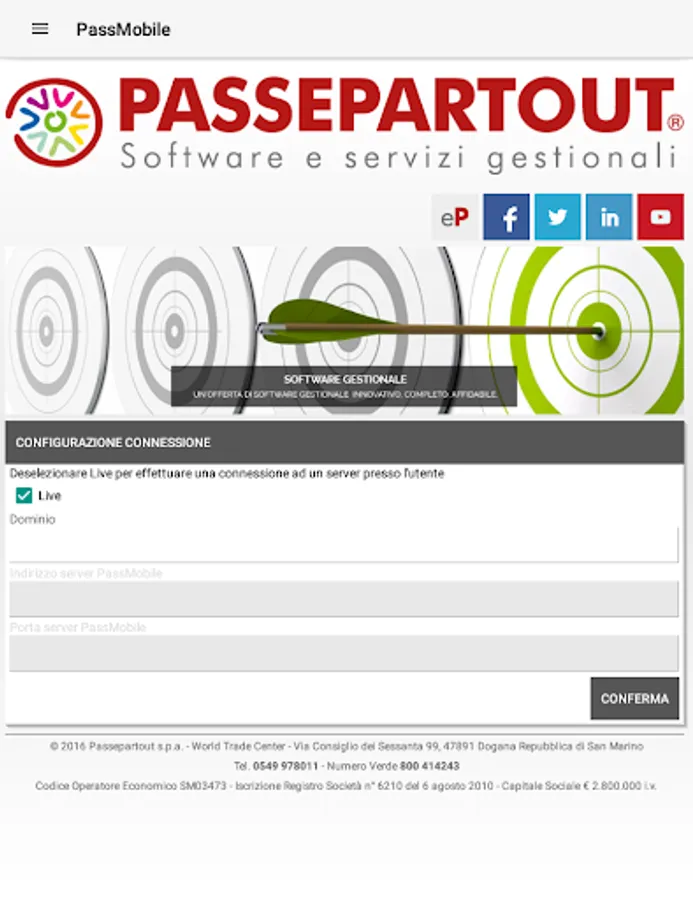 To use the service you must have a Passepartout Mexal or Passcom server.