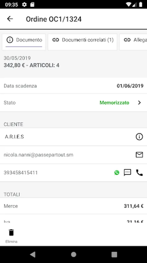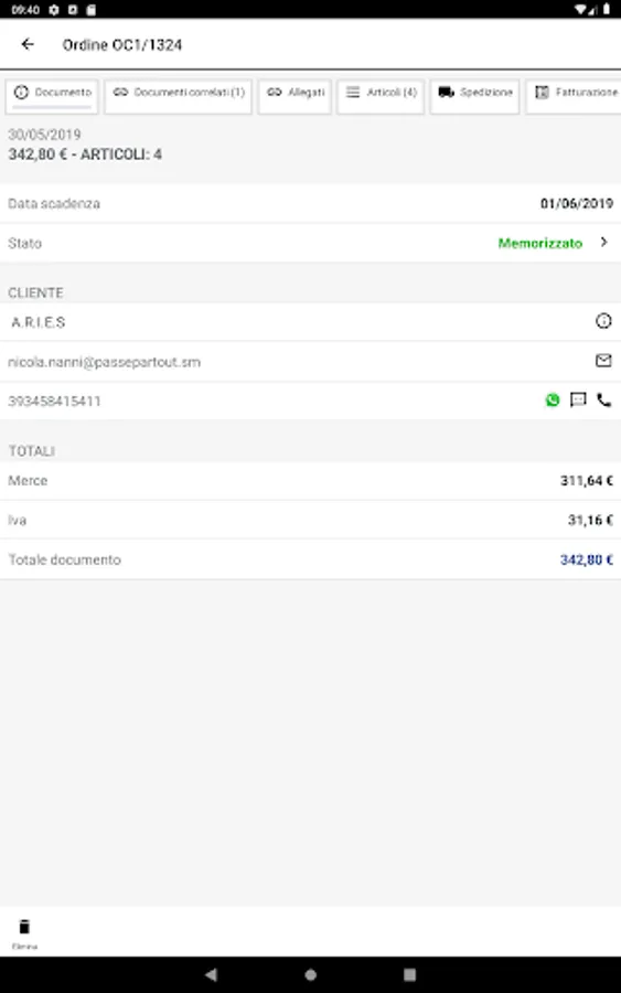 You will be able to consult the list of any orders or bubbles connected to a specific invoice, query the Passepartout management to obtain any documents attached to the order in real time, scan the Bar Code or QRcode sent by the courier and automatically associate the order with the order tracking number ...