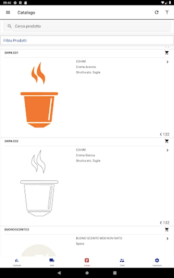 View images, details and prices of each item. Request the availability of each product in real time from the Passepartout management system (Existence, Net Availability, Gross Availability, etc.).