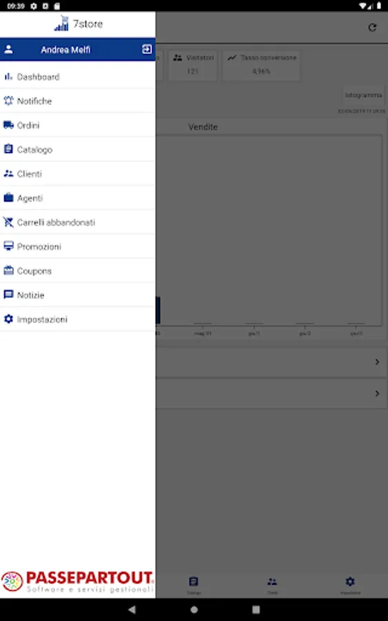 Manage Orders, Customers, Items, launch Synchronizations with Passepartout management, activate or deactivate Promotions and Discount Codes ...