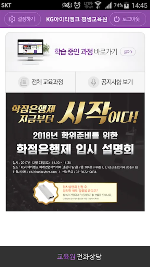 ※ KG IT Bank Lifelong Education Center mobile application service was developed for convenient service use by members.