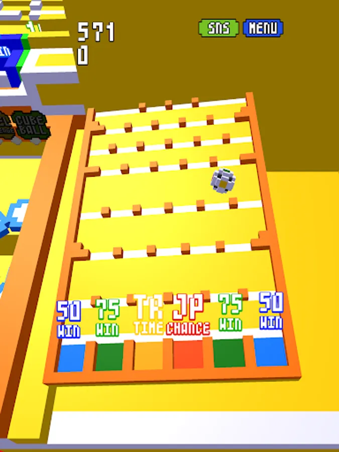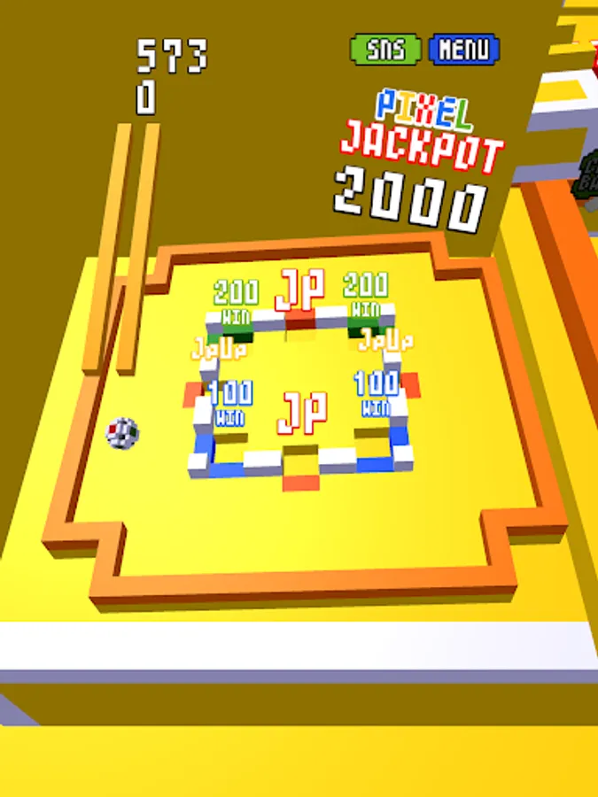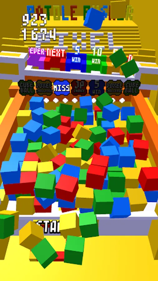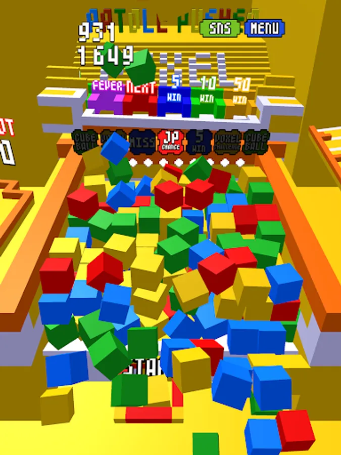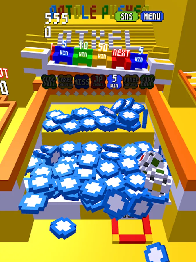 This is a coin pusher game similar to those usually found in arcades. The world of this coin game, however, is made up of blocks!