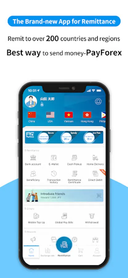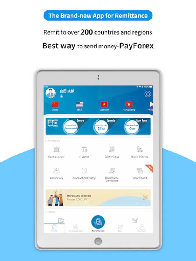 PayForex, provides more low-cost/speedy/secure and simple remittance service. And all procedures are supported online and 24/7, wherever you are.