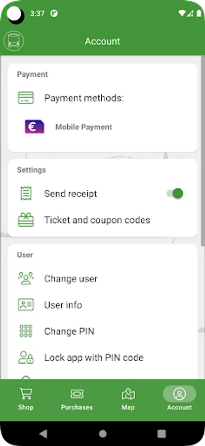 - Single and day tickets can be bought and shared to other users, e.g., children