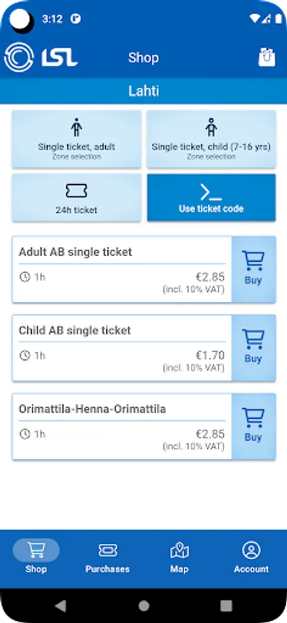 WIth the app you get tickets that are valid in the Lahti region: Lahti, Hollola, Heinola, Orimattila, Asikkala and Padasjoki.