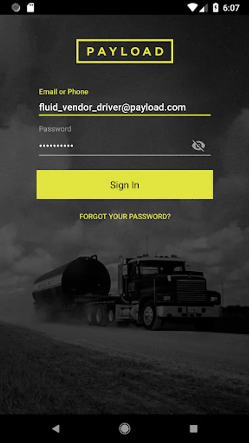 To operate the app a valid username and password issued by Payload is required. Please contact us at support@payload.com if you need one.