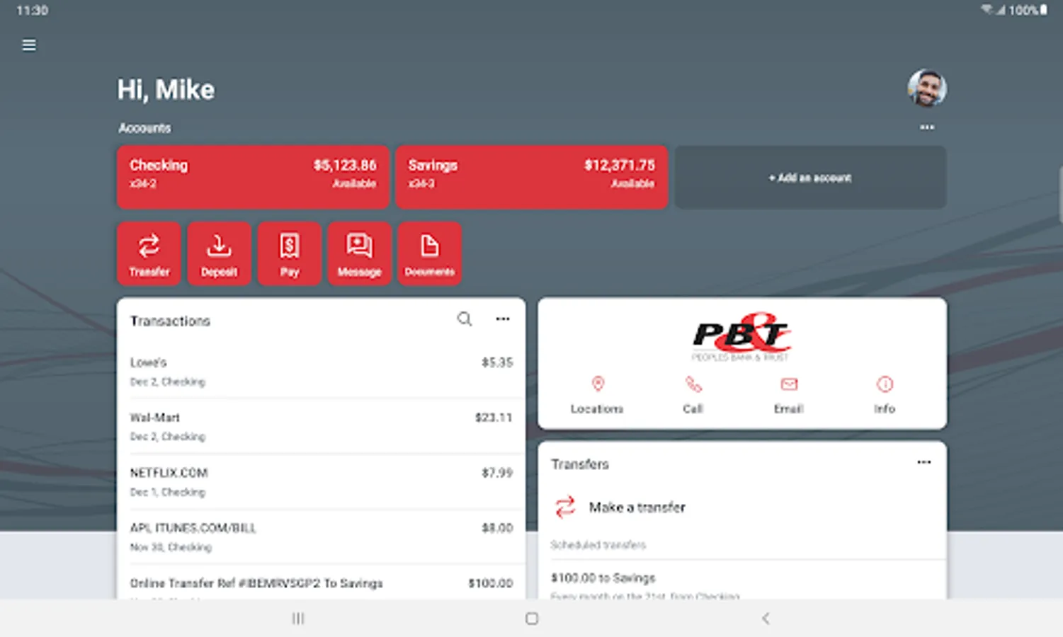 Peoples Bank & Trust is your personal financial advocate. It’s fast, secure and makes life easier by empowering you with the tools you need to manage your finances.