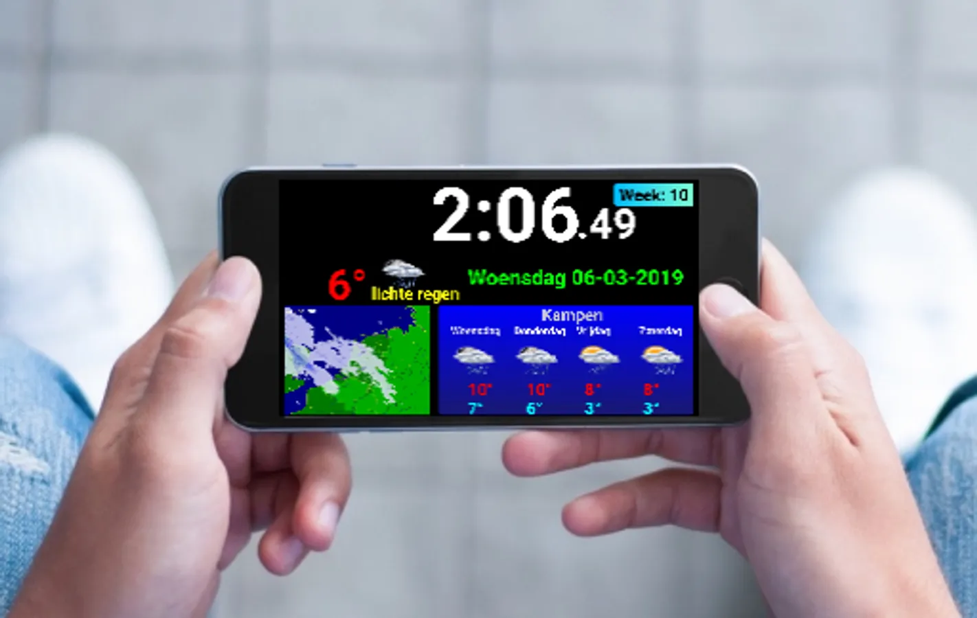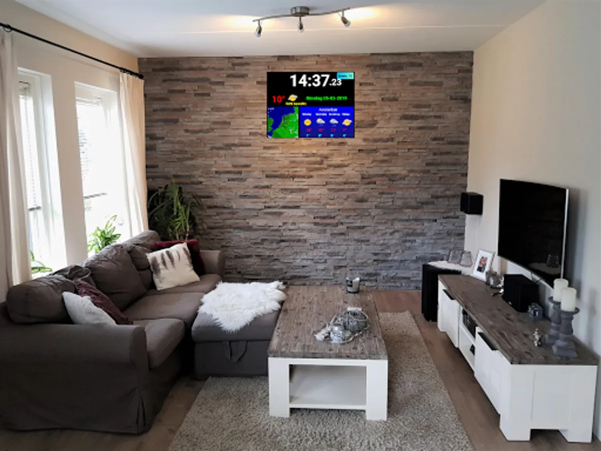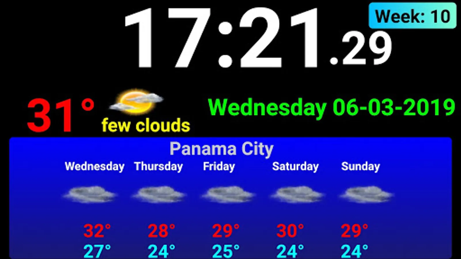 Prepare your home for the future, with this fantastic full screen digital color clock with weather station. This clock automatically reads the temperature of your city. You do not need to set anything yourself. This clock can be used in all countries.