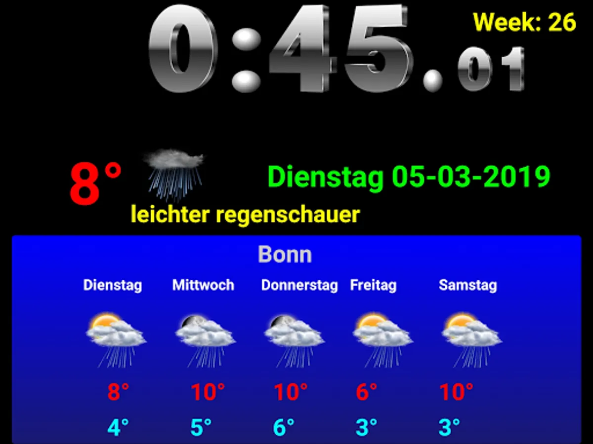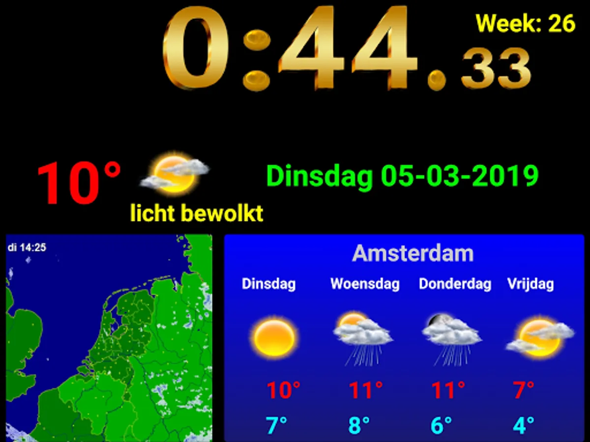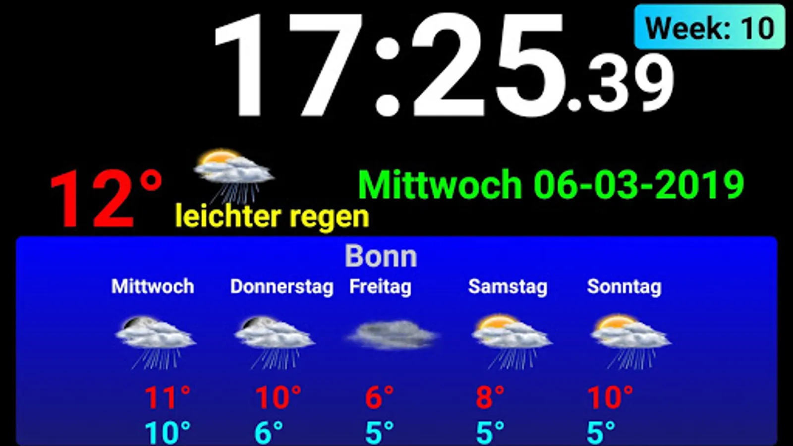 Prepare your home for the future, with this fantastic full screen digital color clock with weather station. This clock automatically reads the temperature of your city. You do not need to set anything yourself. This clock can be used in all countries.