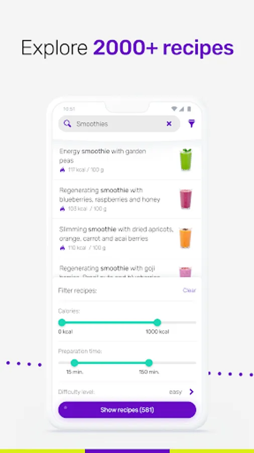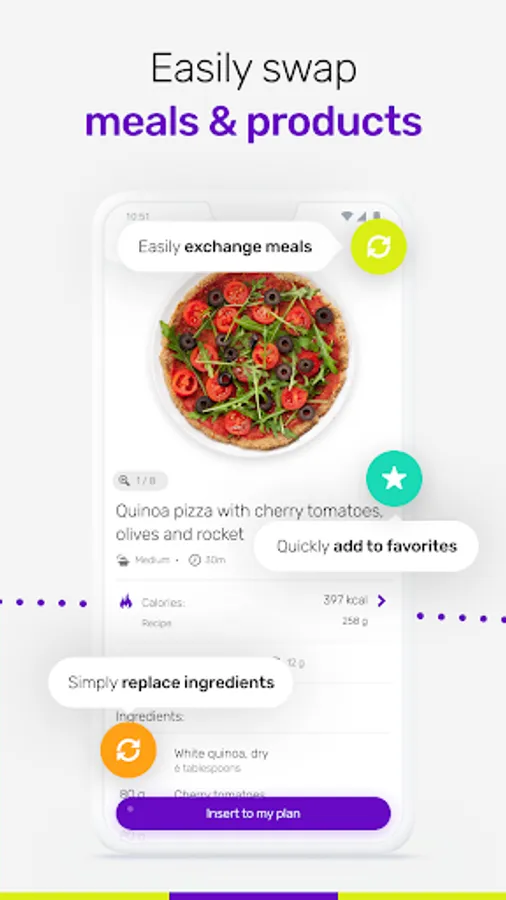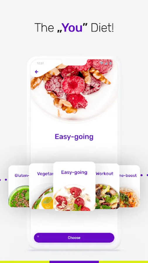 Start personalized & effective diets: Choose from Comfortable, Active, Gluten-Free, Vegetarian and Immune-boost diet plans. You can adapt and modify as you go along, according to your preferences.