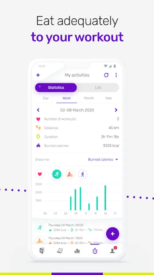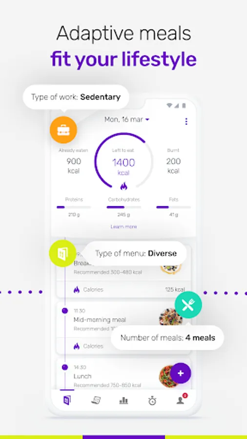 Activity & Fitness syncing: Monitor and track your activities to sync with your daily caloric demand that adjusts depending on your workouts and calorie burn.