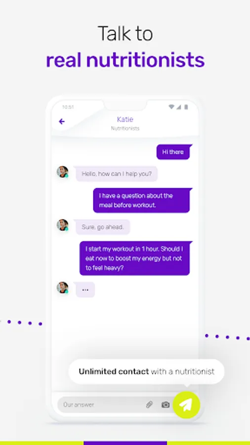 Meet your new nutrition coach: Get unlimited help and advice from specialists, including: clinical and sports nutrition experts.