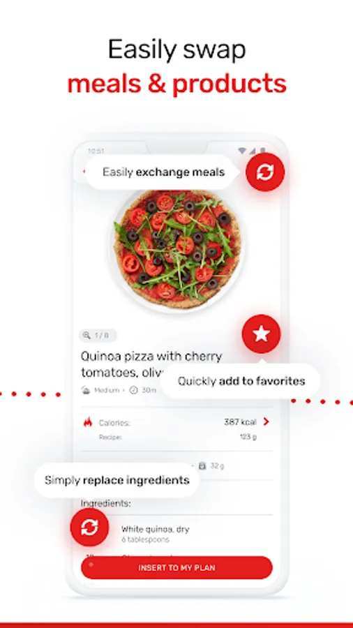 ● Wide selection of diets for effective weight loss, but also muscle building, for people fighting eating disorders, vegetarians, and those who don’t really like to cook!
