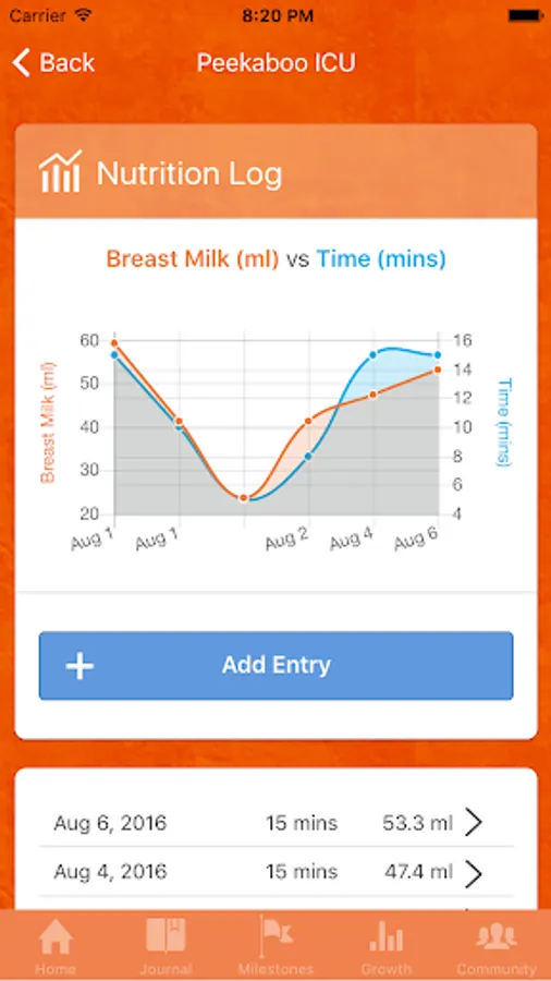 Milestones: This section allows parents to document and record special preemie milestones and memories, including first diaper change, first bath, Kangaroo Care, and more.
