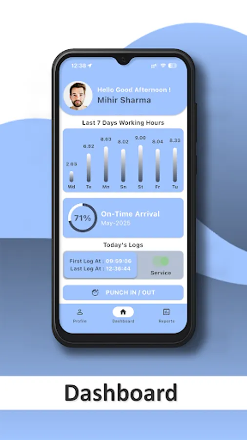 ๐ Dashboard View โ Weekly hours and monthly on-time report