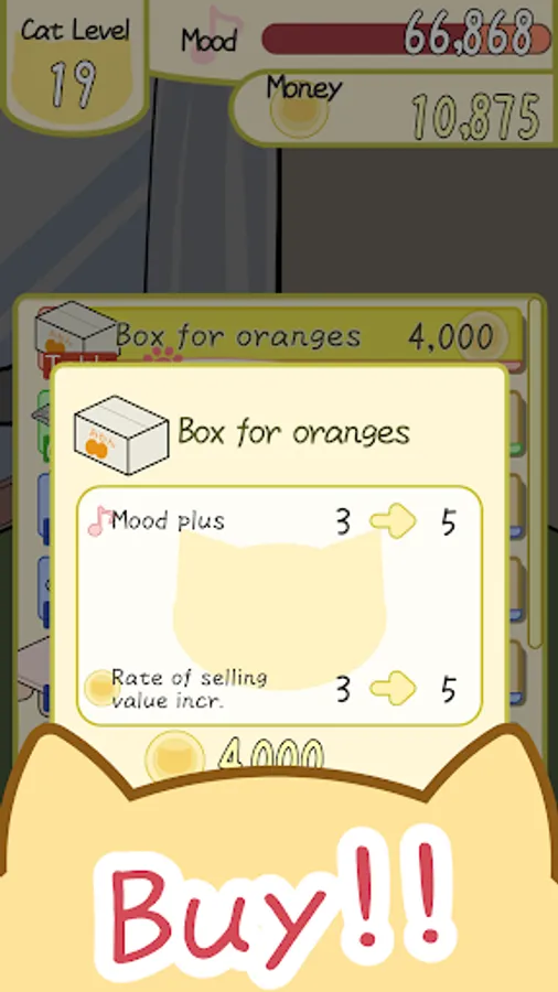 If you collect enough prey and save up enough money, you can buy furniture and treats for your room!