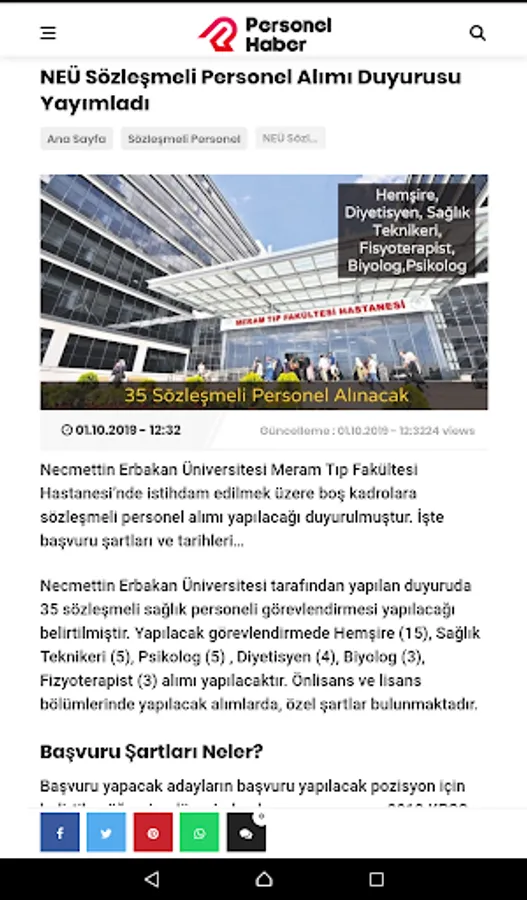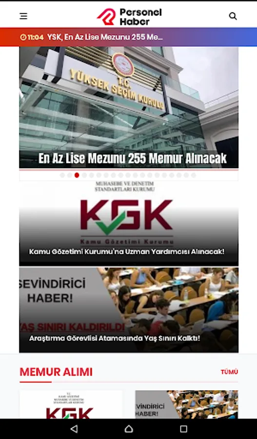 Personnel News application, personnel recruitment, civil servant recruitment, contracted personnel recruitment, academic staff recruitment and current news is the news application. You can be notified of these announcements by opening your notifications in a short time. The explanations regarding the announcements are stated in the contents.