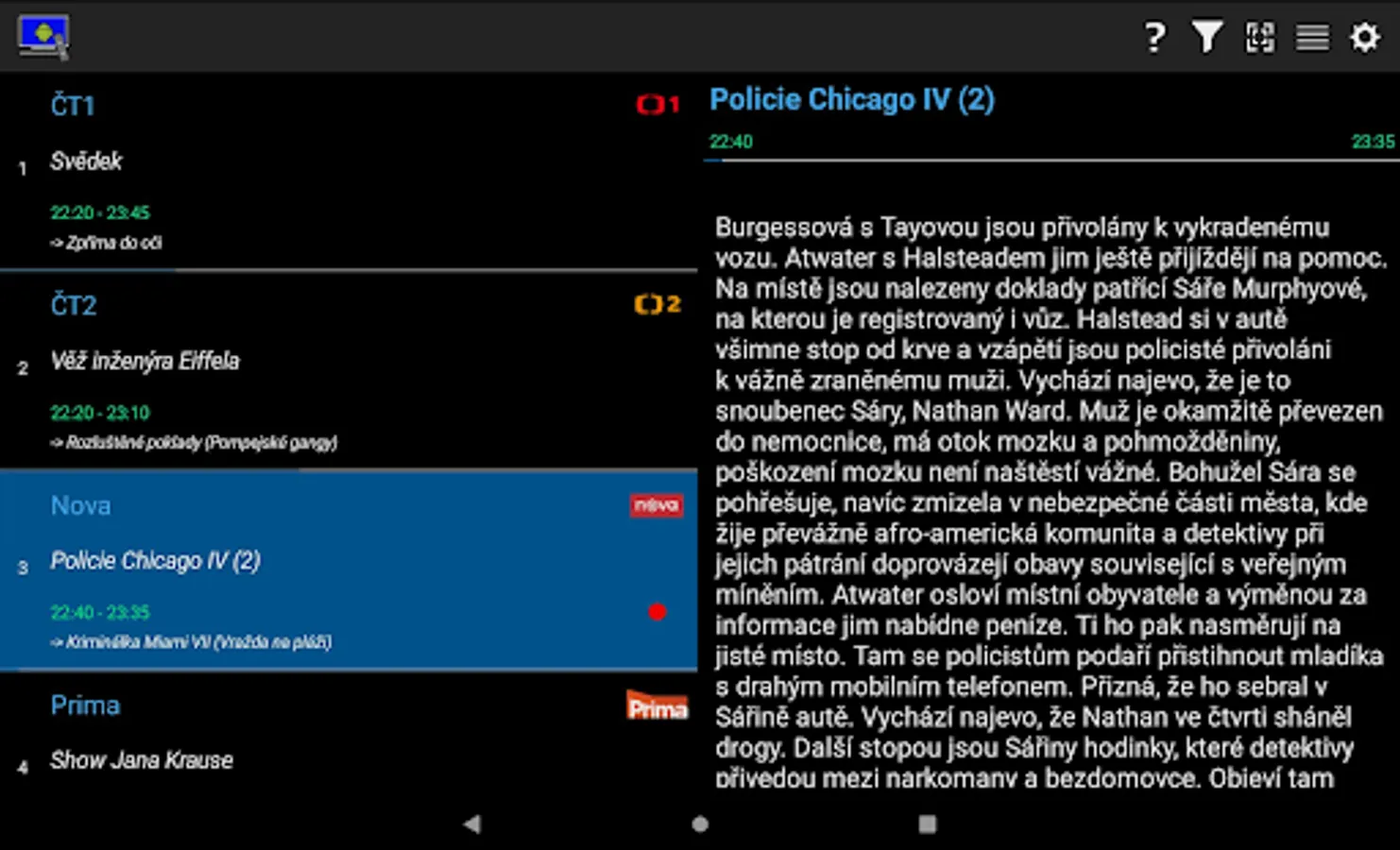 - in the full version (one-time product purchase in the application) the complete list of channels provided by IPTV SledovaniTV, Kuki or O2 TV is displayed