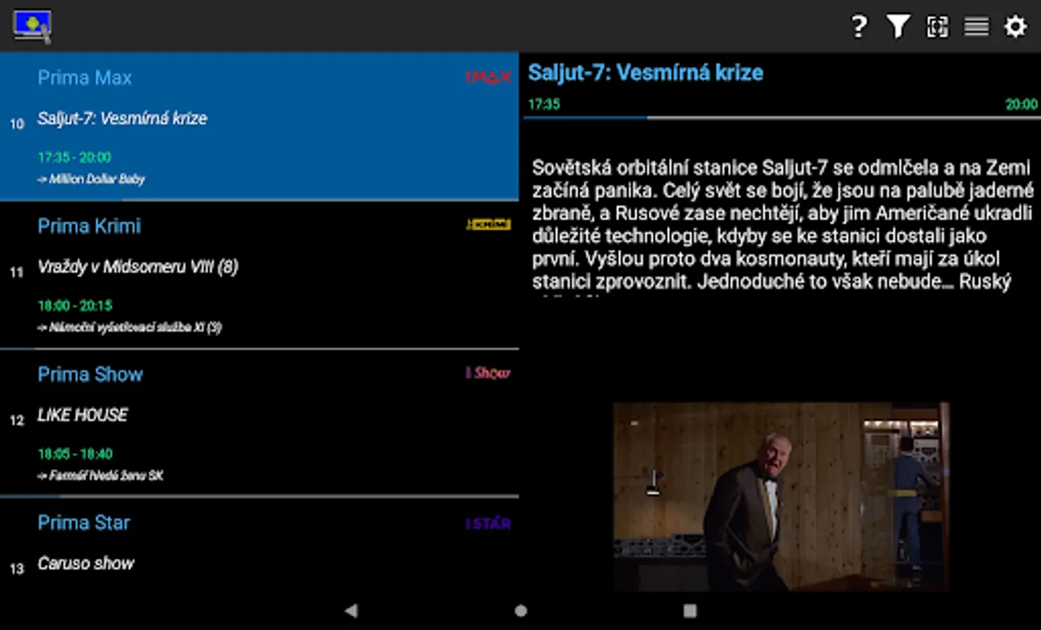 Application for receiving TV and radio on a mobile phone or other Android device (tablet, TV).
