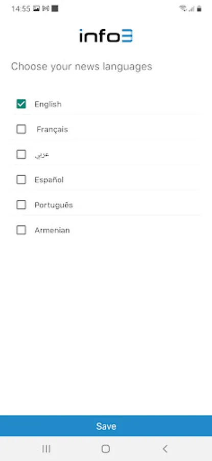 Info3 app and/or news is now available in these 6 languages according to your preferences: