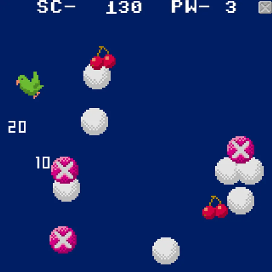 When the bird picks up the food, he will turn green. The green bird can destroy the red ball.