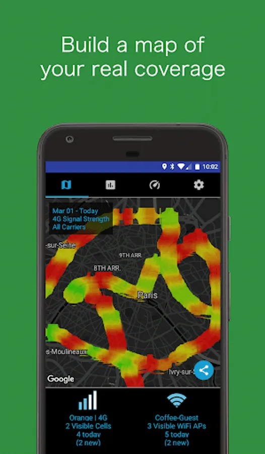 Coverage creates your own personal cell and WiFi coverage map based on signal strength readings from your phone.